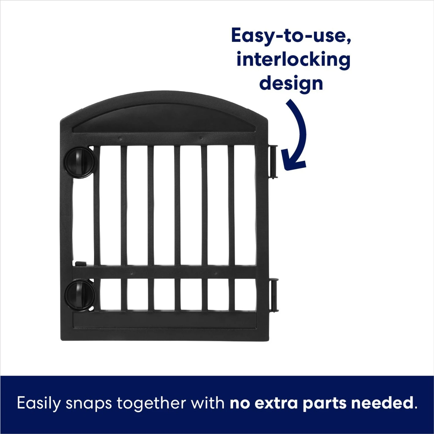 - The gate has been redesigned with an easy-to-use interlocking design that snaps together with no extra parts and a door that requires no added assembly.
