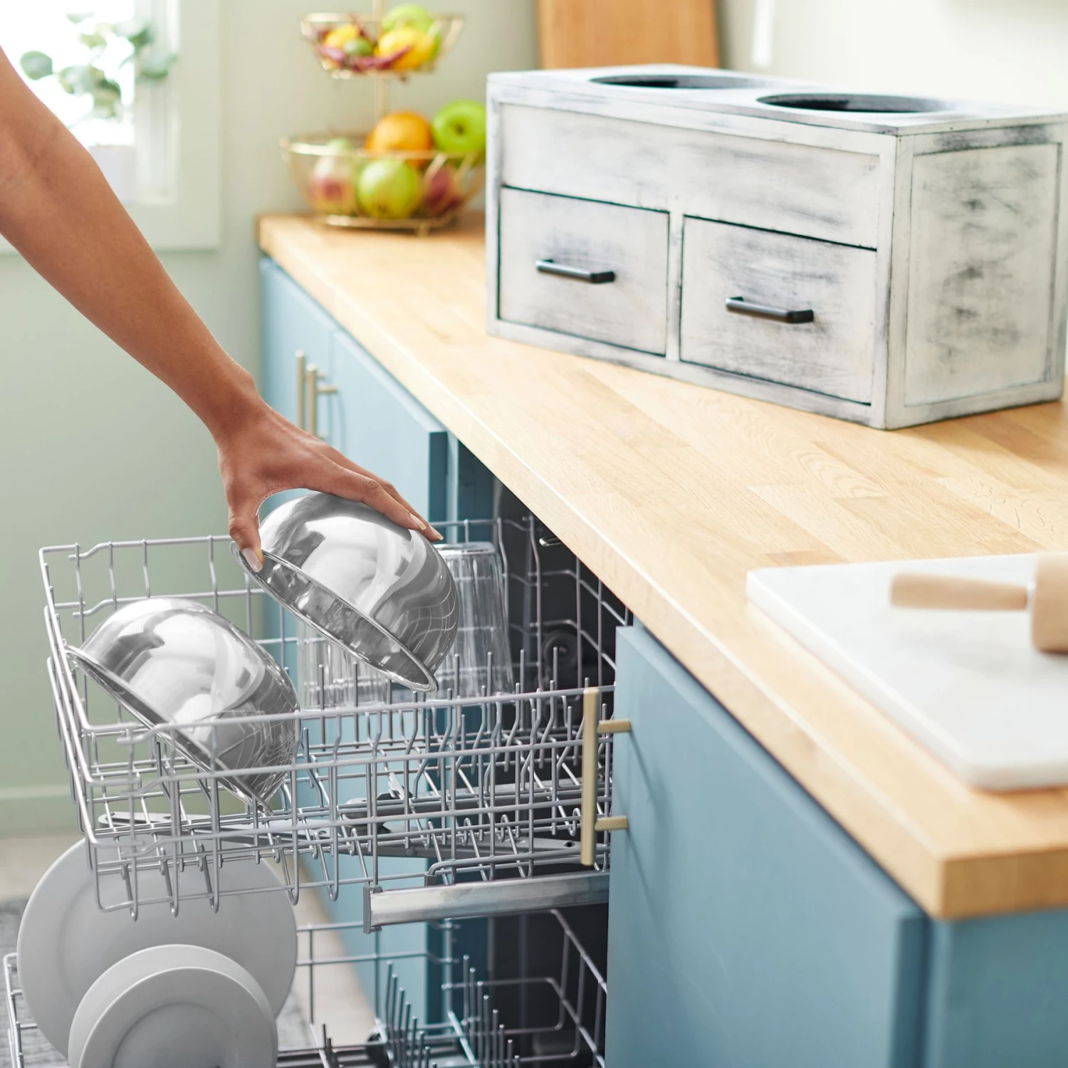 - Removeable stainless-steel bowls are dishwasher safe, making cleanup even easier.