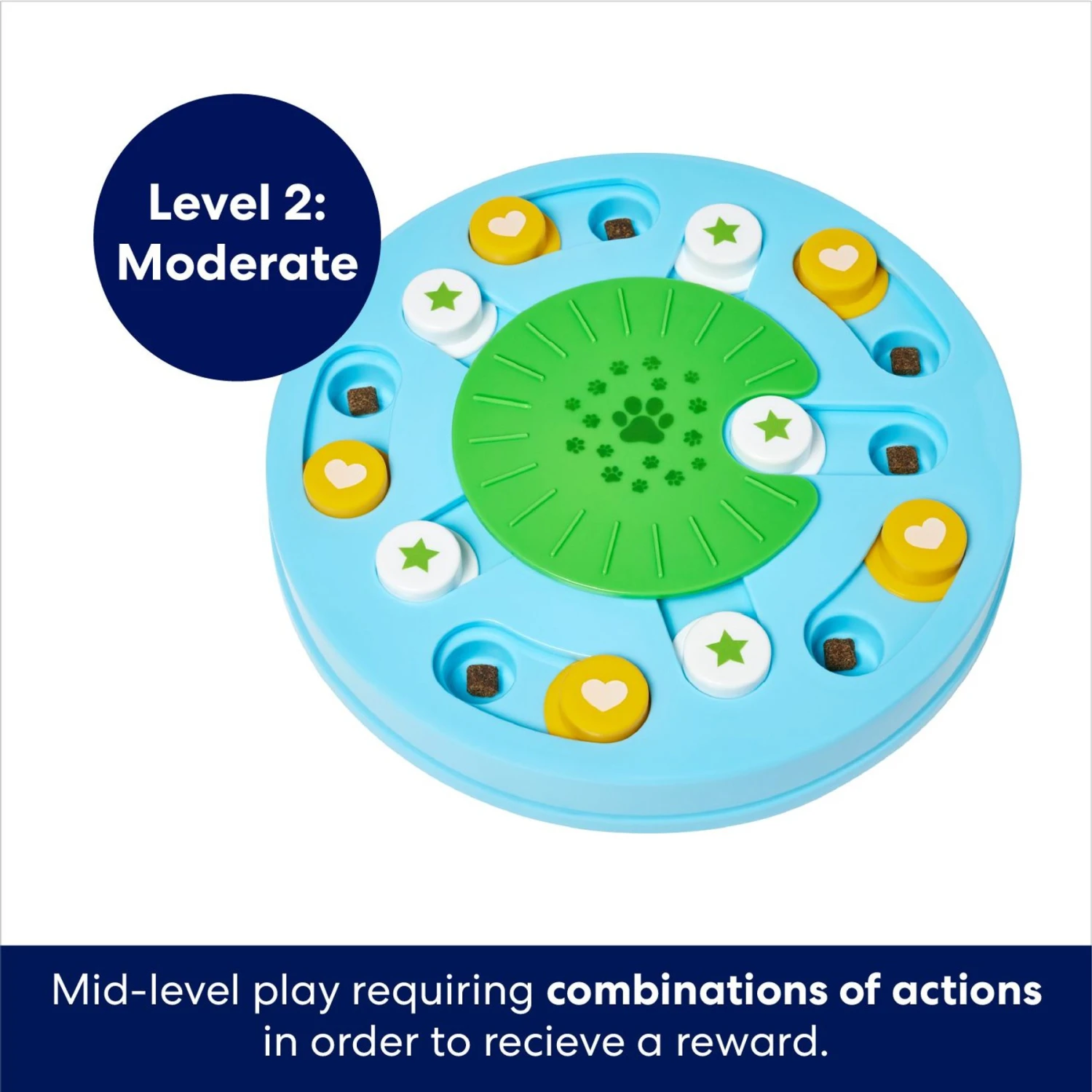 - From Frisco by Chewy. This problem-solving game features sliding pieces and nooks where you can hide small treats or kibble, providing an interactive puzzle for you and your pup to solve together.