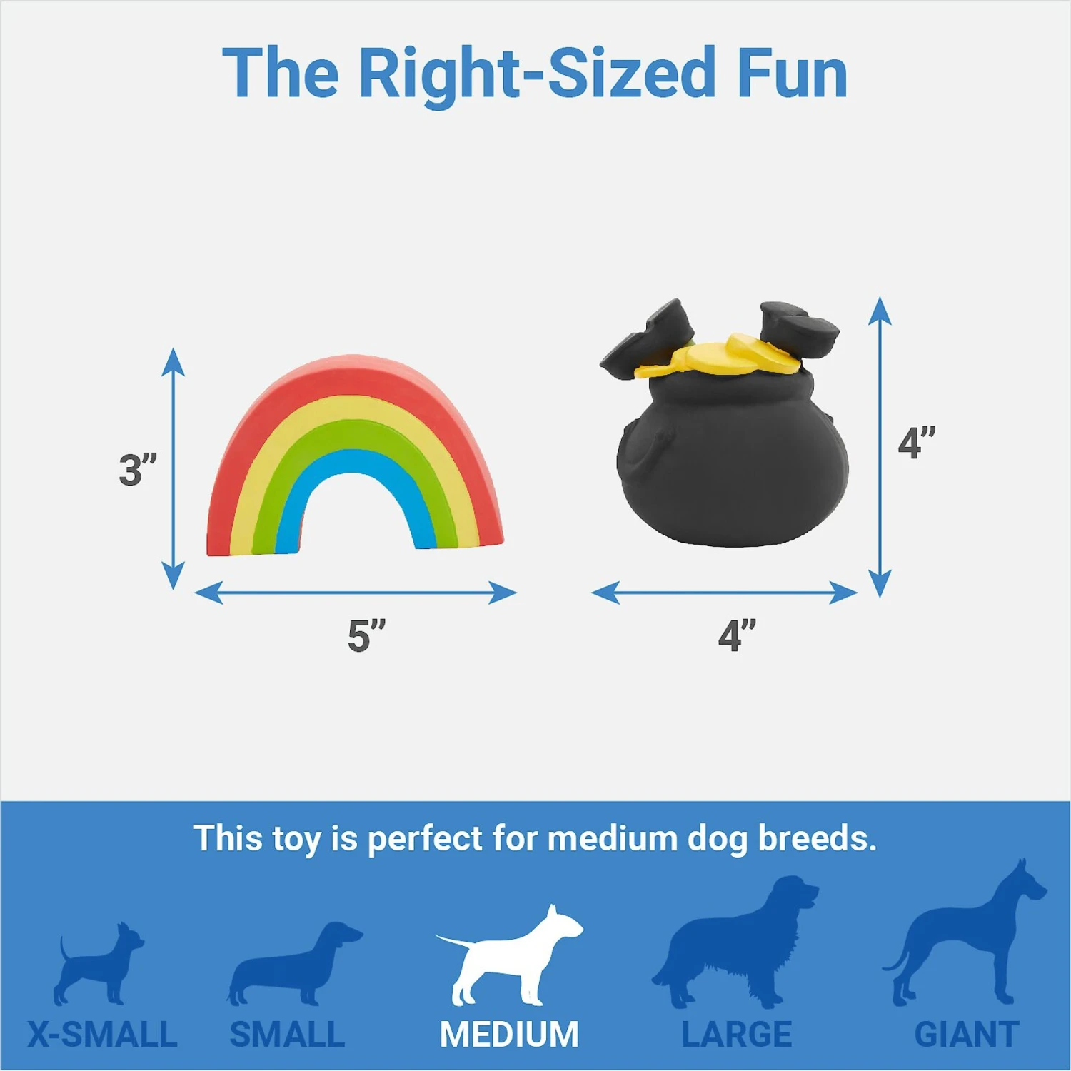 - These latex squeaky dog toys featuring a pot of gold and a rainbow are the perfect toys to keep your pet occupied with loads of playful sessions throughout the day.