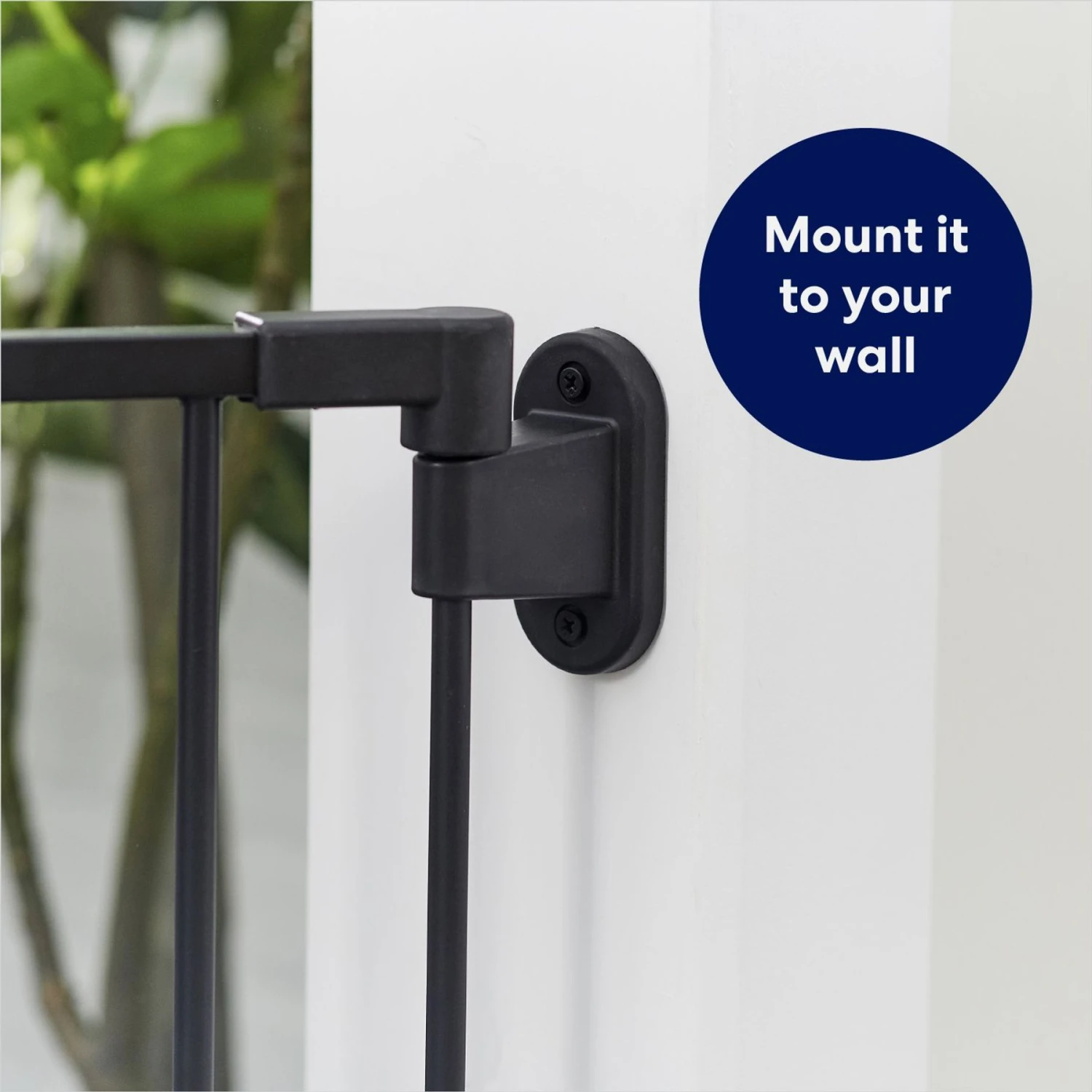 - Includes large anchors to secure the gate between walls and separate open spaces, creating a place for your pet to roam freely. Gate-mounting requires a pencil and screwdriver, and freestanding setup can be done tool free.