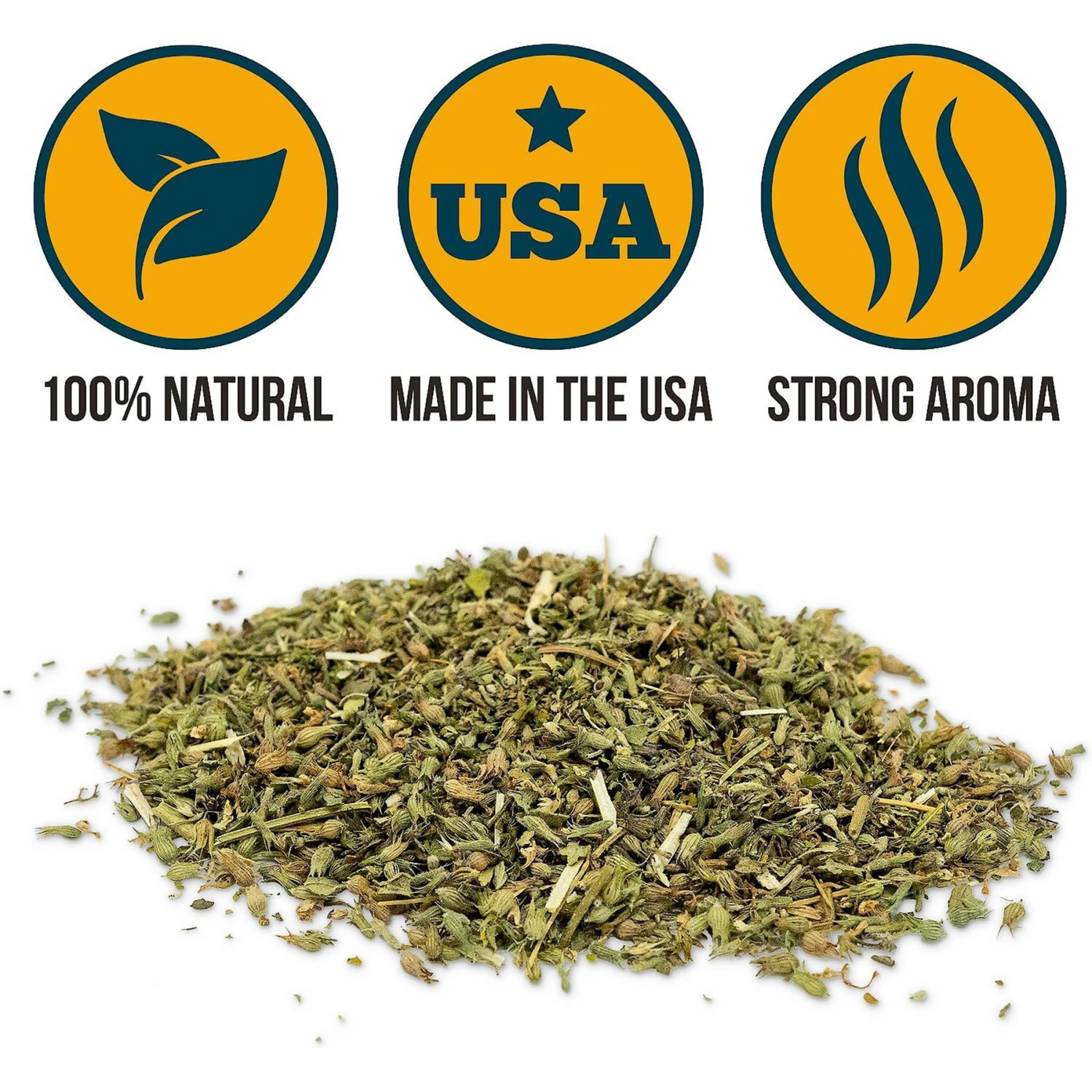 - Features a dried blend of 100% natural catnip leaves and flowers.